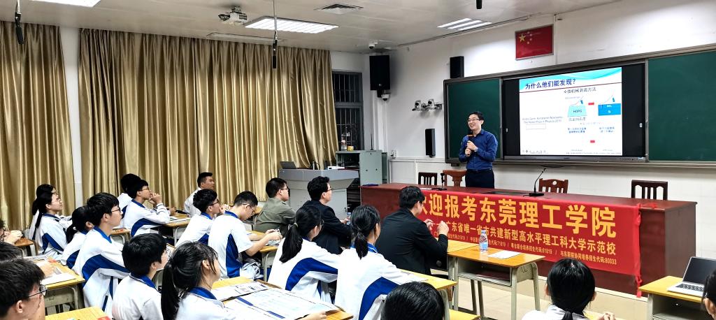 环境工程系系主任李衍亮副教授、高峰副教授、方嘉声博士、学工办胡胜老师组成的招生宣传队伍赴优质生源基地阳江市第一中学开展走访交流、招生宣讲以及送课到中学活动。